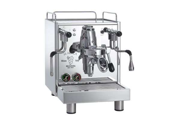 Die Bezzera Magica ist ein klassisch gehaltener Zweikreiser mit der legendären Faema E61 Brühgruppe. Das hochwertige Gehäuse ist aus Edelstahl gefertigt und wird, wie alle Komponenten bei Bezzera, in stolzer Handarbeit in Mailand hergestellt. Dank der robusten Bauteile und der guten Handhabung, verspricht die Magica tagtägliches Barista-Vergnügen.